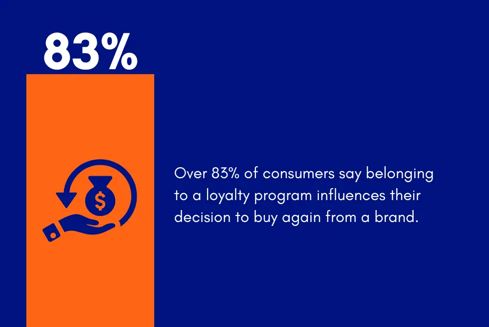 - Over 83% of consumers say belonging to a loyalty program influences their decision to buy again from a brand. (Yotpo)